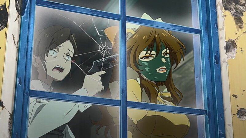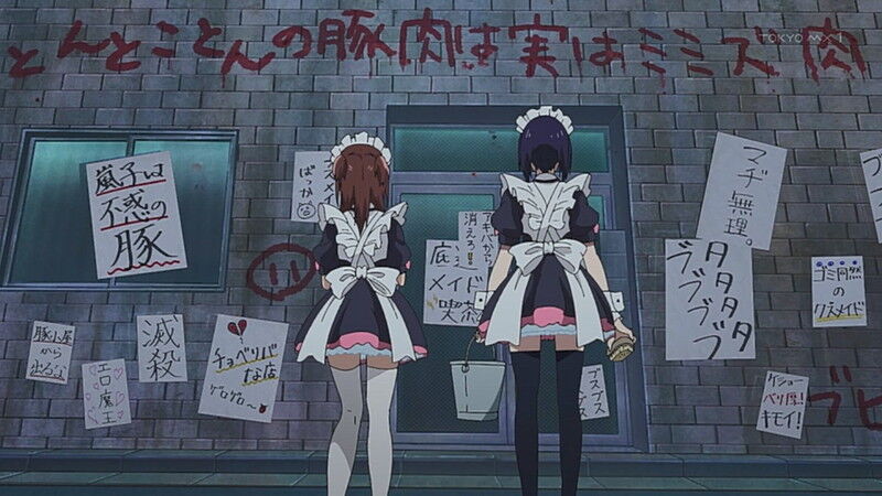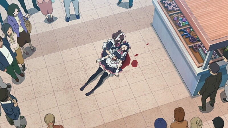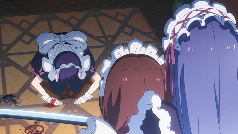 1話の感想サイトとかの画像を見ても撃たれたメイドの中にピンク色の髪がおらん