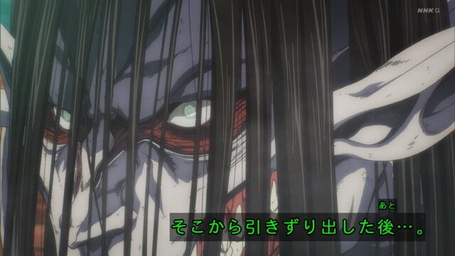 グロ規制があったんだろうけど違和感感じたのは巨人が蹴飛ばした瓦礫のせいでハリルの脳が露出するシーンが岩で隠されてたとことラムジーの潰れるシーンが巨人の重さで骨が変型して顔の形が変わるまで踏み潰された描写までやって欲しかったのと潰された跡の二人の描写が原作だと衣服のおかげで分かりやすかったけど血と骨で分かりづらかったせっかく前回のopで蝶々で表現したくらい印象的なシーンなんだからもう少し分かりやすく描いて欲しかった。まぁグロ規制のせいってことで目をつぶるけどね。