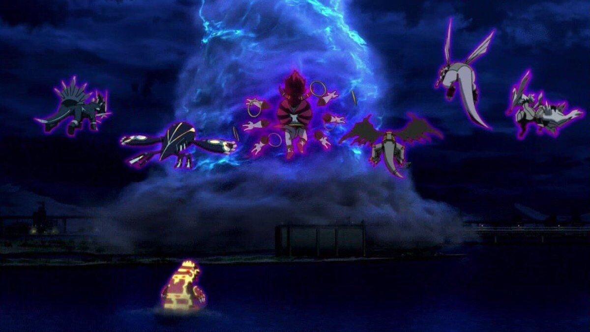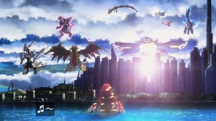 フーパ→ワープホールで呼び出されるも空を飛べないためサトシ達との空中戦に参加できない。帰りも1体だけ徒歩で海を渡る(カイオーガは泳ぎ、それ以外は飛行)