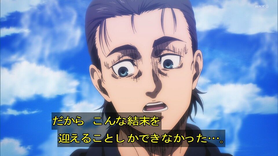 結局は「一匹残らず駆逐してやる」と言う自分の信念を貫けず中途半端な形で大地を踏み鳴らした結果歴史を繰り返した訳だからエレンも小物よな