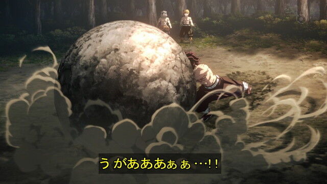岩を動かすだけで大袈裟な作画と劇伴に草