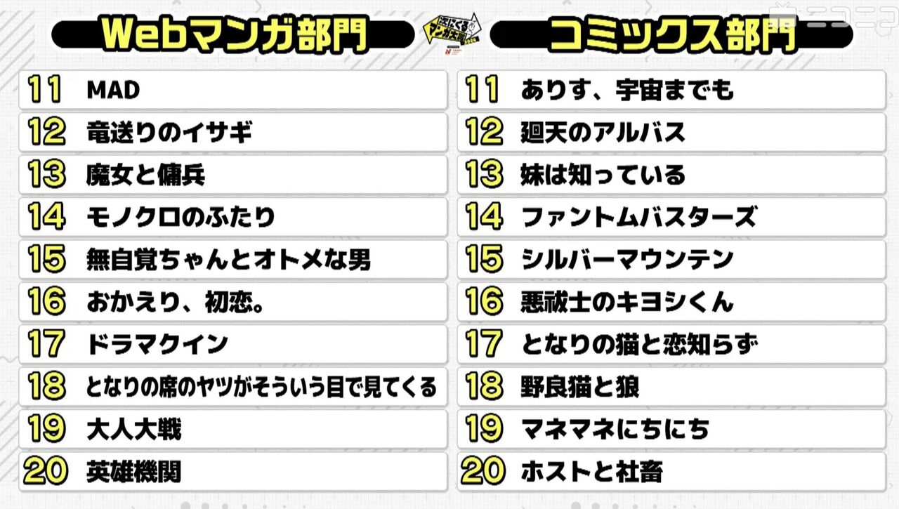 この漫画が凄いから始まり、マンガ大賞とか次にくるマンガ大賞とか