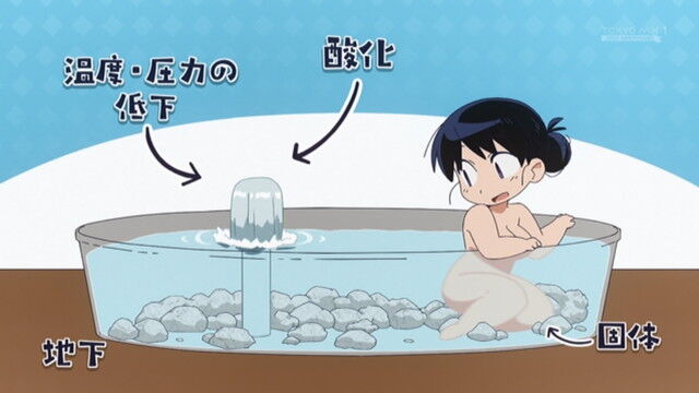 温泉に浸かりながらマグマや石の話をして今まさに石そのものに入ってる様なものと感慨を得てる流れなんだから話としては別に不自然でもなかろうよ